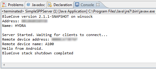 Hi, I saw your post yesterday, it is very nice. But today I tested this in my PC which has Win7 32 bit OS and connected USB bluetooth device. After running java server application, I got below exception.